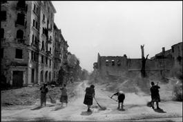 09/1996. Grozny. Chechen women cleaning the streets at the end of the fighting.