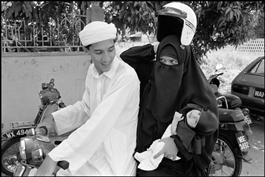 MALAYSIA. A fundamentalist family on a motorbike outside the...
