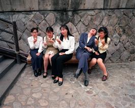 JAPAN. Visitors eating eggs cooked in Yunomine hot springs. 1998.