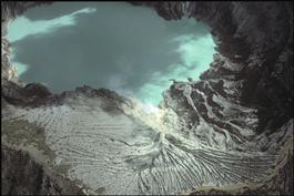 Geen sulfur lake in the crater of the volcano Kawa Ijen in Java.