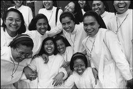 PHILIPPINES. Manila. 1995. Novices and sisters in a playful mood at the Dominican convent of Santa Catarina. The order was founded in 1696 by Mother Francesca del Spiritu Santu.