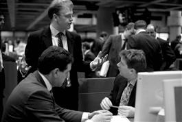 England. London. City. Lloyds. Underwriters conducting business on the floor of Lloyds.