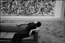 USA. New York. Metropolitan Museum of Art. Man seated in front of a Jackson Pollock painting. 1969