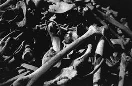 POLAND. Lublin. 1994. Bones encased in a crematorium at Majdanek...