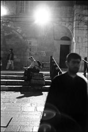 ISRAEL. Jerusalem. 2000. A priest and pilgrims in front of the Church of the Holy Sepulchre.