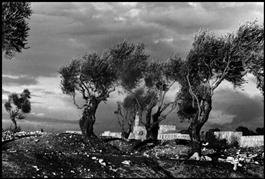 Jerusalem. 1957. David's Tower and the old city wall seen through an olive grove on the Israeli side.