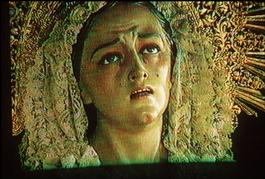 SPAIN. Sevilla. 1996. Holy week. Virgin on TV screen.
