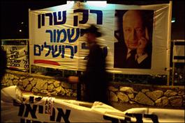Campaign poster for Ariel SHARON in the Orthodox Quarter of Jerusalem, Mea Sh