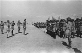 The troops of the General KOENIG presenting arms to the General DE GAULLE.