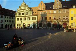 Germany, Weimar. The Lucas Cranach building at the marketplace...