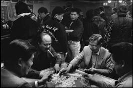 Gambling in the Hung Mon Association Headquarters during the Chinese New year. The Hung Mon (red Gang) organization is the leading power of all the Chinese Tongs in New York and directly linked to the Triads.