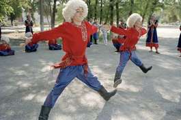 TURKMENISTAN. Children in traditional Turkmen costume.