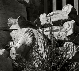 GREECE, iocnic capitals anbd foot of a statue, Eleusis 1937