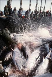 Slowly the "Chamber of death" nets are pulled to the surface and the fish struggle to escape.