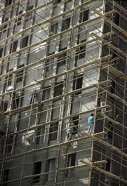 LEBANON. Beirut. In Christian Ashrafya in the area worst hit by the clashes between Micheal Aoun's army and Samir Geaga's Lebanese Forces Militia, a news building goes up. 1991.