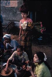 BURMA. Sandoway. 1977. Women at a market. They are wearing a...
