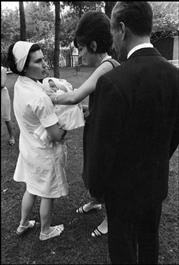 Mlle Roseline CODERCH, the French nurse from Perpignan,holds the newborn baby Prince Ali Reza before his parents.
