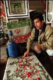 IRAN. Tehran. 1998. Player Alireza MANSOURIAN visiting tomb of friend killed at age 18 during Iran/Iraq war.