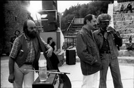 FRANCE. Provence-Alpes-Côte d'Azur region. Var department. Ollioules. Châteauvallon festival "Musique ouverte", first edition. From left to right : French jazz musicians Henri TEXIER (double bass), Swiss jazz musician Daniel HUMAIR (drums) and US jazz musician Dannie RICHMOND (drums) from the "CHARLIE MINGUS QUINTET" who came to visit during rehearsal and soundcheck for the evening concert. FRANCOIS JEANNEAU TRIO. Wednesday, August 18th 1976.