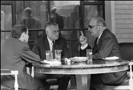 CHINA. Beijing. Official visit of French President Georges POMPIDOU, in China from 11 to 18 September 1973. From left to right: Michel JOBERT, French minister, the ambassador of France in Peking and Georges POMPIDOU.