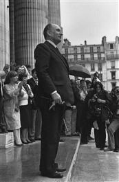FRANCE. Paris. 21 Mai 1981. François MITTERRAND, newly elected President of France, holding a rose (symbol of the French Socialist Party) in front of the Panthéon.