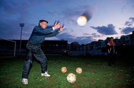 Lebanon. Playing football at sunset in Lebanon. 1996.