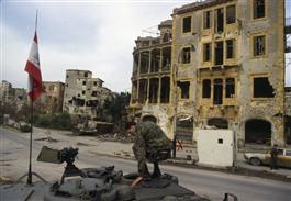LEBANON. Beirut. Lebanese soldiers guard a "green line" crossing piont. 1991.