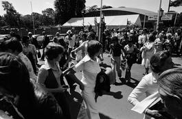 GB. London. The Wimbledon Lawn Tennis Championships. The Semi-Finals. The queue for tickets. 1977.