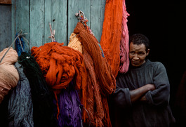 MOROCCO. Neighbourhood of Mouassine. Wool dyers, now a disappearing craft. 1977.