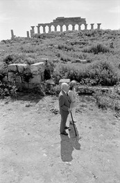 Selinunte, Sicilia: il poeta Jorge Luis Borges e Maria Kodama tra le rovine dei templi.