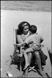 SPAIN. Sagaro. 1959. Elizabeth TAYLOR with her son Christopher while shooting the film "Suddenly Last Summer". Christopher and his brother Michael are the children of Michael Wilding, Taylor's 2nd husband. The film, in which she co-stars with Katharine Hepburn and Montgomery Clift, is Taylor's first after the death of her 3rd husband, Mike Todd, in a plane crash. Just months after Todd's death, Taylor married Eddie Fisher and found herself at the center of a scandal. It was a place that would become familar for her, though never comfortable, for the next 30 years.