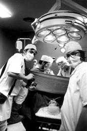 Intervention au bloc opératoire : ablation de la rate par le docteur Gauchet.