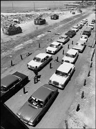 LEBANON. Israeli column advances towards Beirut (north), and traffic of Lebanese civilians fleeing out of the zone towards the south. June 1982.