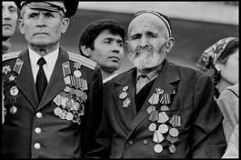 USSR. Tajikistan. Dushambe. A Russian officer and a muslim World War II veteran display their medals at a patriotic celebration. 1987.