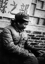 MAO Tse-Toung resting after visiting the exhibition of the industrial and agricultural production in Shaanxi-Ganxu-Ningxia Border Region. The banner refers to the party chapter and town section.