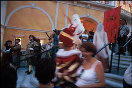 USA. Nevada. Las Vegas. 2000. Carnival ceremony on the artificial "Grand Canal" specially built for the Venetian Hotel.