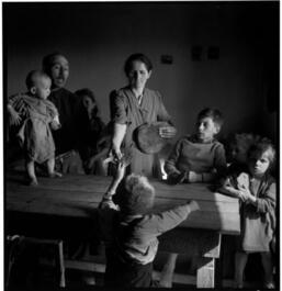 Displaced Persons Camp from the Sudeten land, an old arsenal, half-destroyed, which was given to the displaced persons. Here they live to work in Austrian farms and factories. From their places of work they have been given some materials to rebuild part of the arsenal. The nursery is run by the displaced persons themselves. 400.000 children in Austria get UNICEF food (all the children under 6 years old).