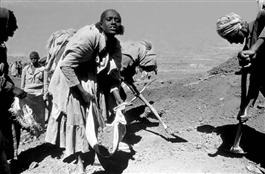 Africa. Ethiopia. Ethiopian volunteers working to build a dam by hand without any mechanical aids.