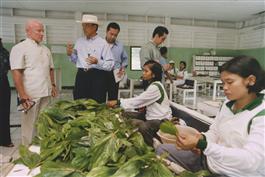 INDONESIA. Sumatra. Perawang. 2000. Mark Mobius a global investor who manages more than $13 billion in emerging- markets assets for Franklin templeton investments. Mark Mobius at Indah Kiat's pulp and paper mill in Perawang. A pruning shed where acacia leaves are readied for planting.