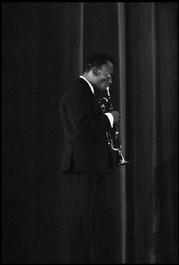 FRANCE. Paris. 8th arrondissement. Pleyel concert hall. US jazzman Miles DAVIS (trumpet) during the concert of the MILES DAVIS QUINTET including US jazz musicians Wayne SHORTER (saxophones), Herbie HANCKOCK (piano), Roy CARTER (doublebass) and Tony WILLIAMS (drum).