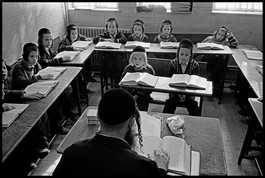 Young Hassidic Jews study sacred texts in the yeshiva of Torah Veyira. The yeshiva's director (talmudic school) Rabbi HIRSH, is Yasser ARAFAT's advisor on Jewish Affairs.