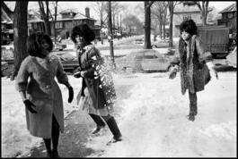 USA. Detroit, Michigan. 1965. The Supremes in a snowball fight...