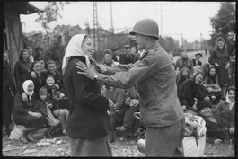 An American soldier with a newly arrived refugee from the Eastern front.