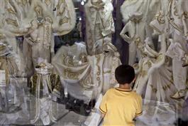 TURKEY. Istanbul. Eminonu, boy looking to the circumcision clothes.