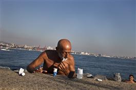 TURKEY. Istanbul. Sarayburnu, People enjoying the bosphorus from the neighbourhood.