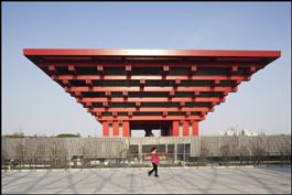 CHINA. Shanghai. 26 March 2010. A woman walks past the China Pavilion for the World Expo 2010 in the Expo site in Shanghai.