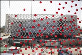 CHINA. Shanghai. The French Pavilion is seen from the Swiss Pavilion for the World Expo 2010 in the Expo site. 26 March 2010.