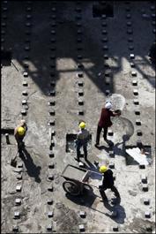 CHINA. Shanghai. Workers labor on the construction site of the French Pavilion for the World Expo 2010 in the Expo site. 26 March 2010.