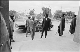 Arrivée du président de la République du Tchad François TOMBALBAYE a l'assemblée nationale lors de la fête de l'independance. Lundi 11 Aôut 1969.