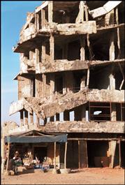 AFGHANISTAN. Kabul. December 2001. Little shop under ruins in city center.